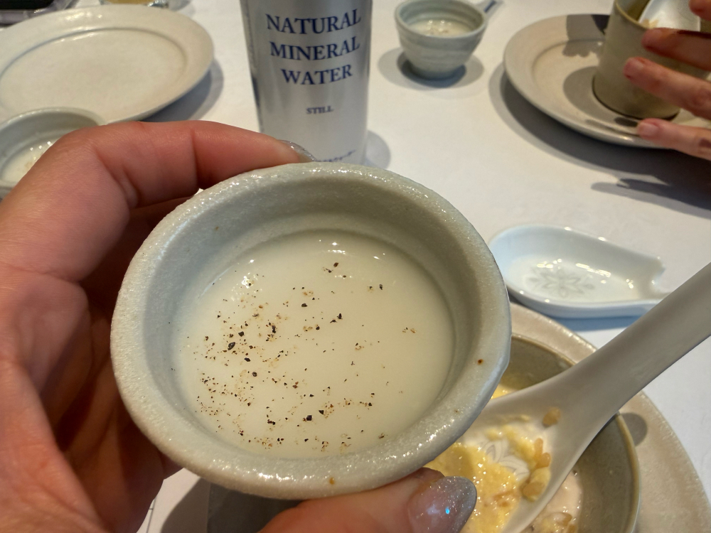 The standout bite that I will always remember was the “Tuna Tuna TUNA,” three cuts from the same fish (tuna obviously!) sushi. As soon as it entered my mouth, it just disappeared… it was amazing! The revisited chawanmushi (savory egg custard) was very interesting too! The concept was to put some rice in it so it looked more like a risotto than the traditional dish we’re used to. As a drink, we were served a glass of doboroku (unfiltered) sake. First, we drank it just as it is (what I am used to!), but then the chef put some black pepper in it and… Oh my god! I would never have thought of it, and for sure I will do it again. The balance was perfect, and the taste was very unique with a punch!