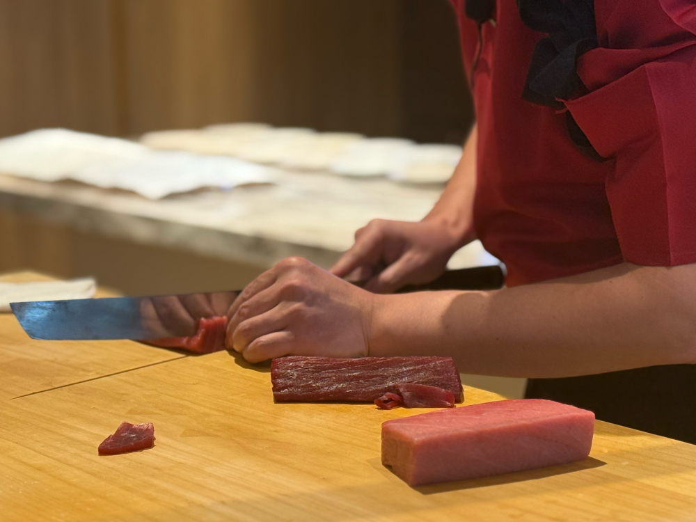Chef at Hiroya Tokyo Mae cutting tuna – Credit Jessica Iragne